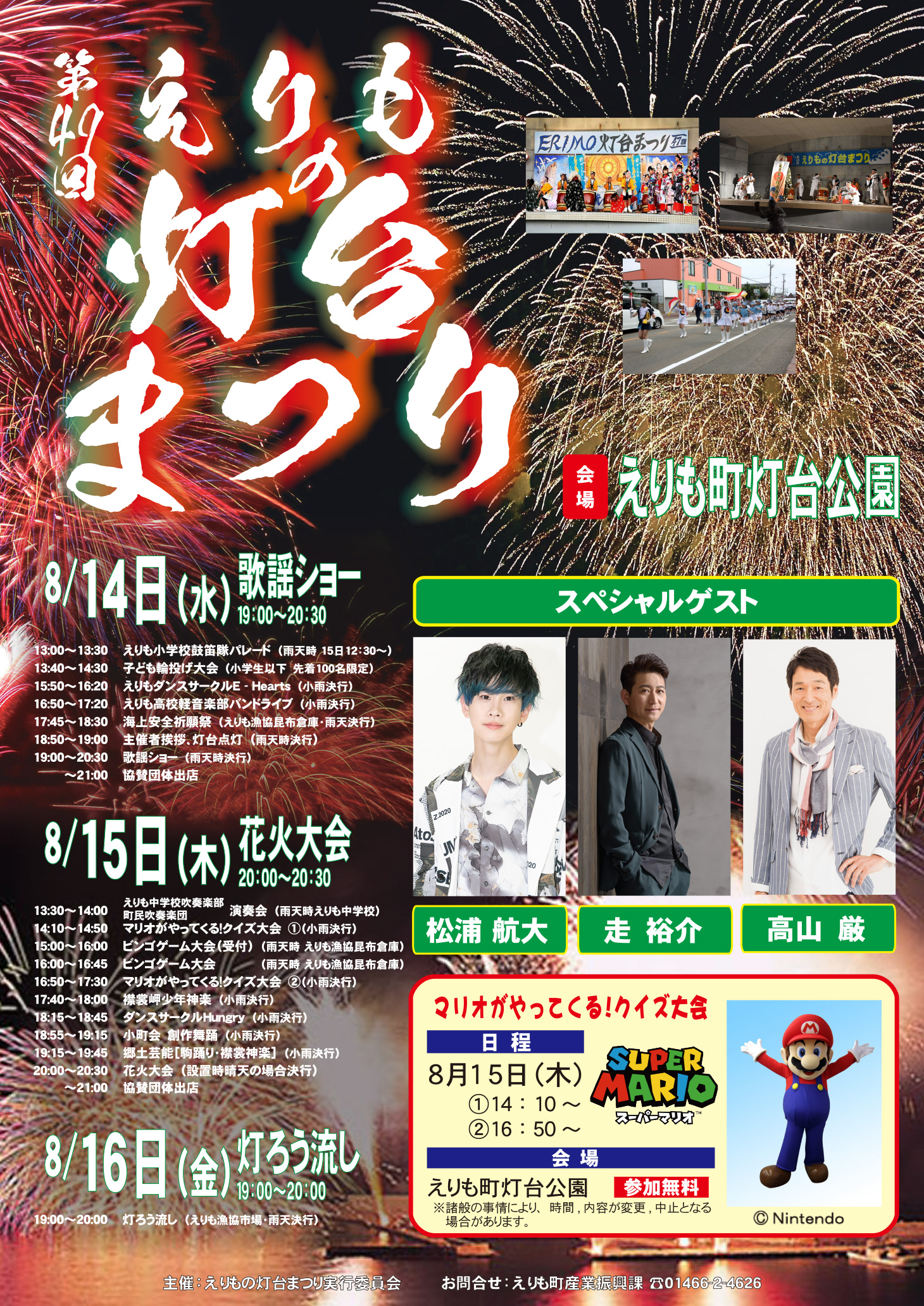 8/14(水)「第49回えりもの灯台まつり」歌謡ショーに出演します。