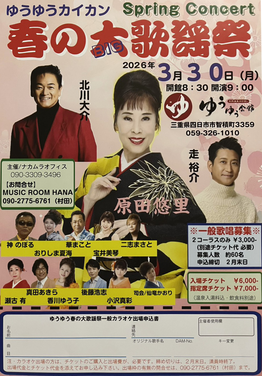 料金:指定席チケット¥7,000/入場チケット¥6,000(温泉入浴料込・飲食料別途)