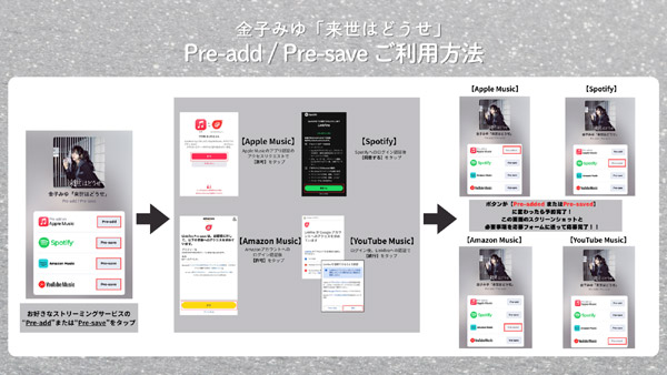 (1) 対象期間中、下記ページよりApple Music / Spotify / Amazon Music / YouTube Musicのどれかを選択の上、Pre-add / Pre-saveを設定