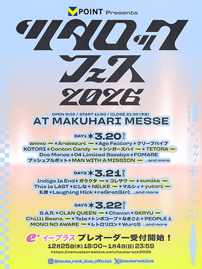 ※「Vポイント presents ツタロックフェス2026」は、3/20〜22の3日間開催