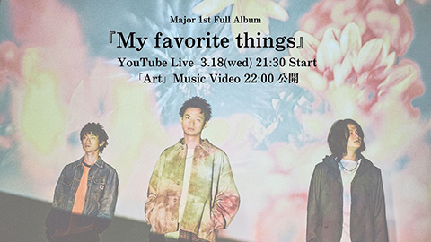 Major 1st Full Album『My favorite things』のリリースを記念して、3月18日(水)21:30からYouTube生配信、22:00から「Art」Music Videoのプレミア公開が決定!