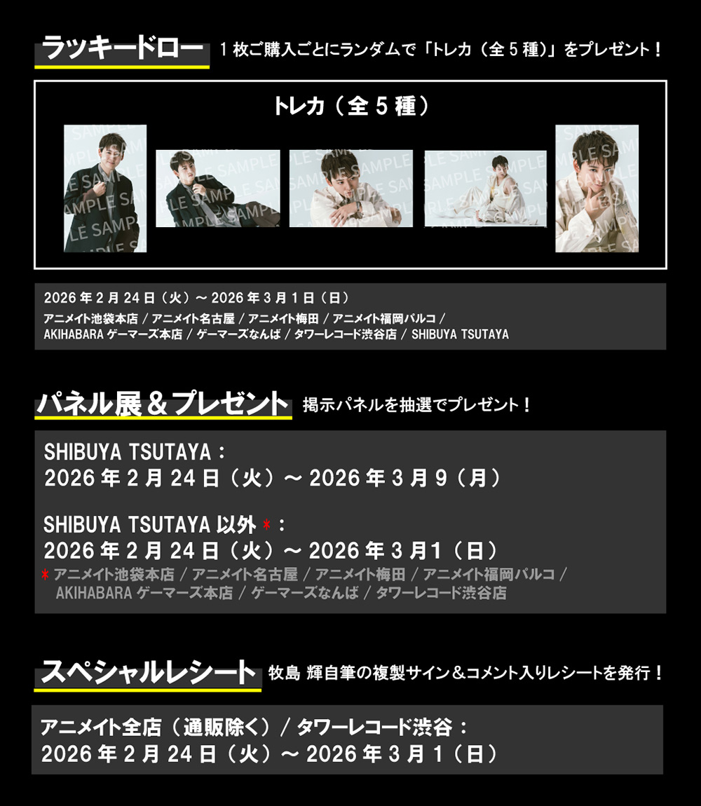 対象店舗にて1stミニアルバム『ガッシュ』をお買上げのお客様に、牧島 輝自筆のプリントサイン&コメント入りレシートをお渡します!