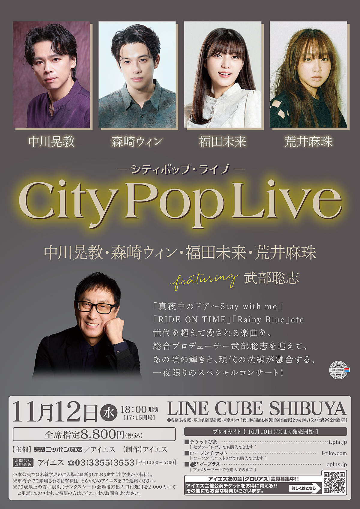 11/12(水)開催「City Pop Live」に森崎ウィンの出演が決定!