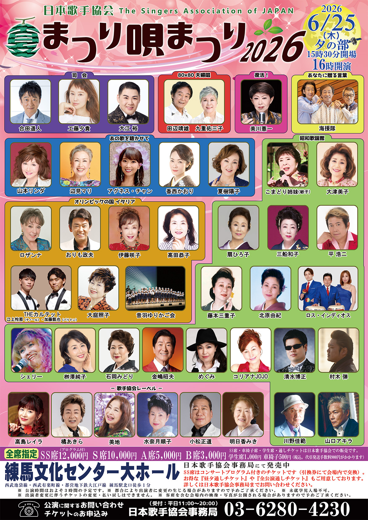 6/25(木)「夏まつり唄まつり2026」夕方の部に出演します。