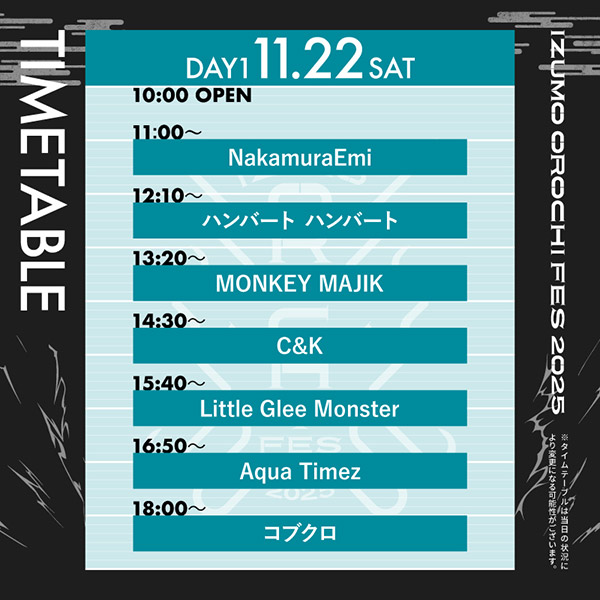 [時間] OPEN 10:00 / START 11:00