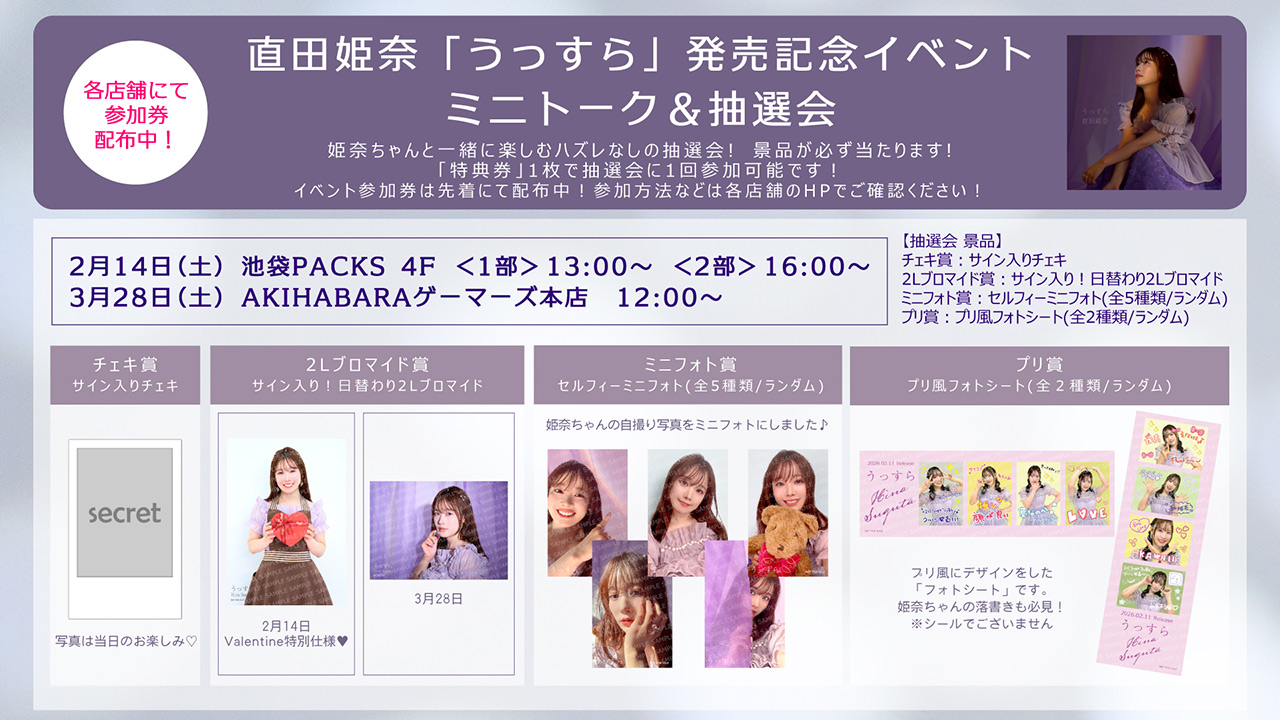 直田姫奈 1stシングル「うっすら」の発売を記念して、リリースイベントの開催が決定しました!